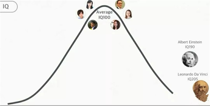 上面這張圖,人類正常的智商(IQ),都在100左右,罕見的天才愛因斯坦190,達芬奇205。那么請問,未來AI的智商,會是多少呢?